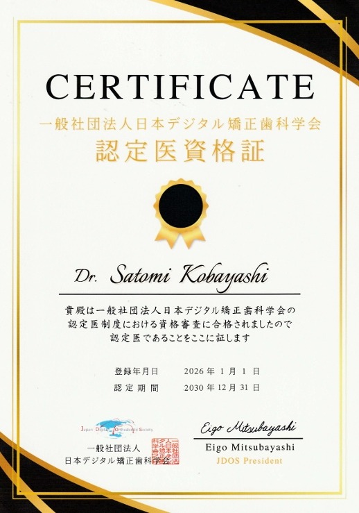 ※日本デジタル矯正歯科学会 認定医は、デジタル技術を活用した矯正治療に関する知識・経験を学会基準で認定された歯科医師に与えられる資格です。